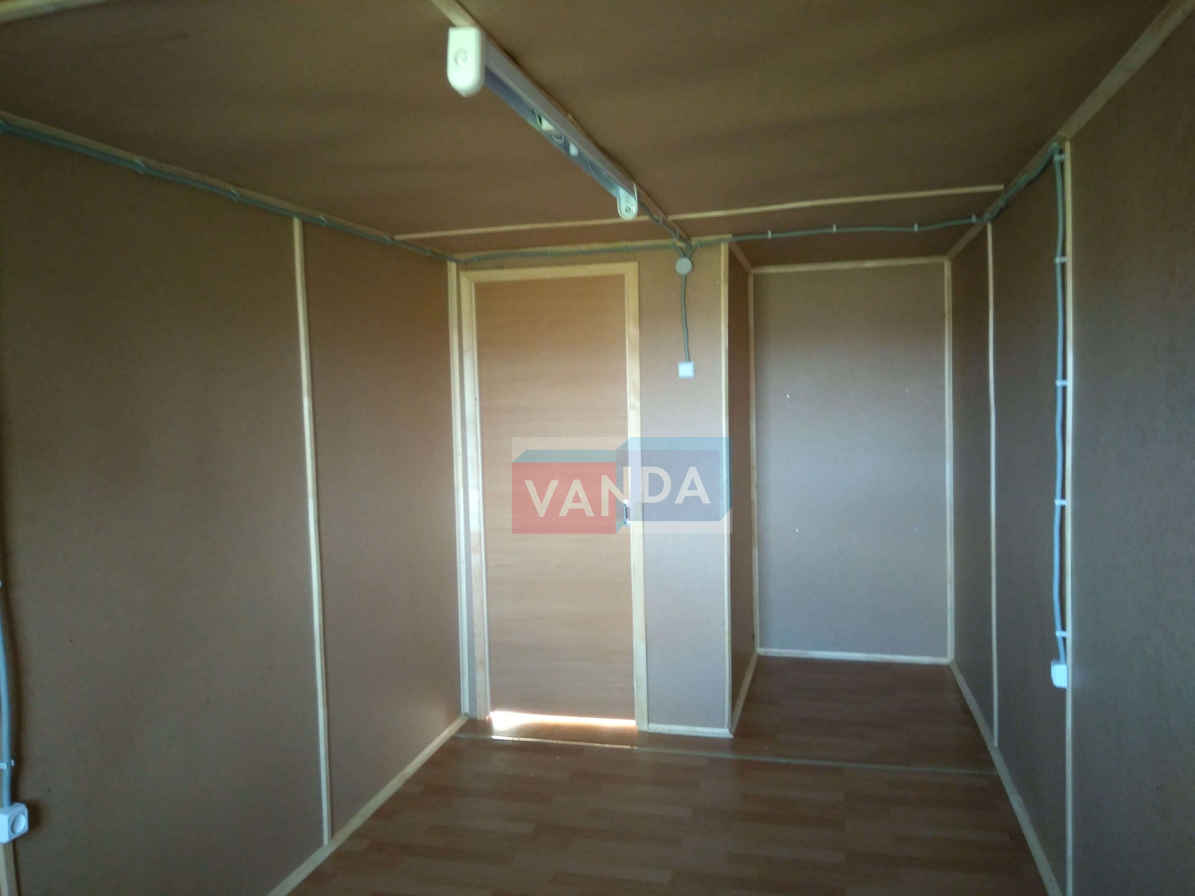Металлическая бытовка с тамбуром 5,85 x 2,4 - Оргалит ДВП