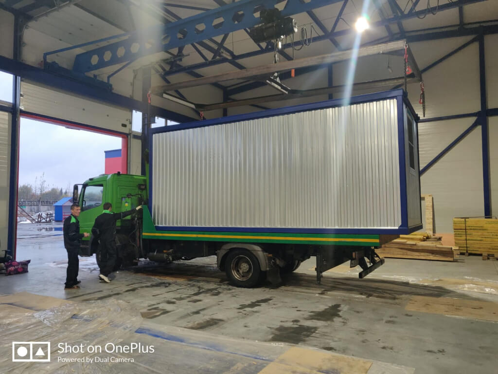 Фотографии погрузки блок-контейнера на наш автотранспорт